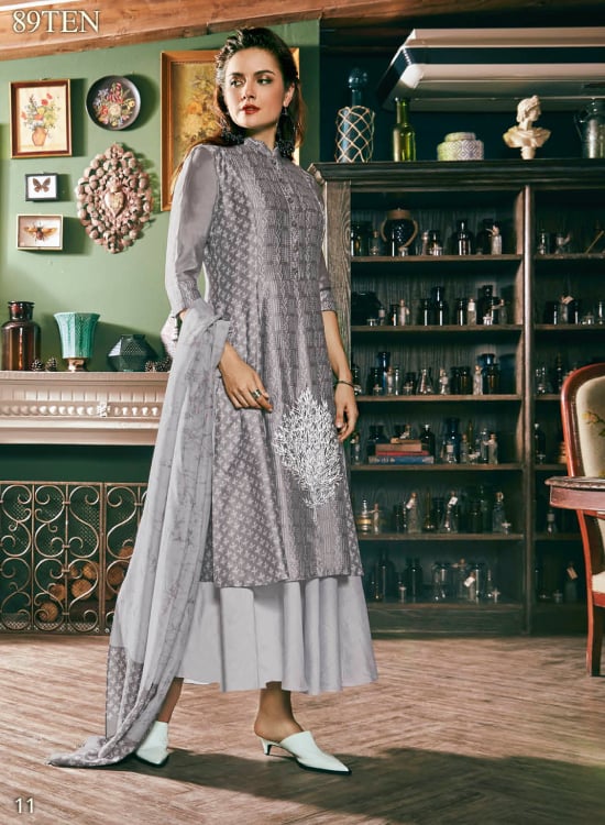 | Material | Cotton Silk Layered Top & Scarf & Mall Mall Cross Dupatta |
